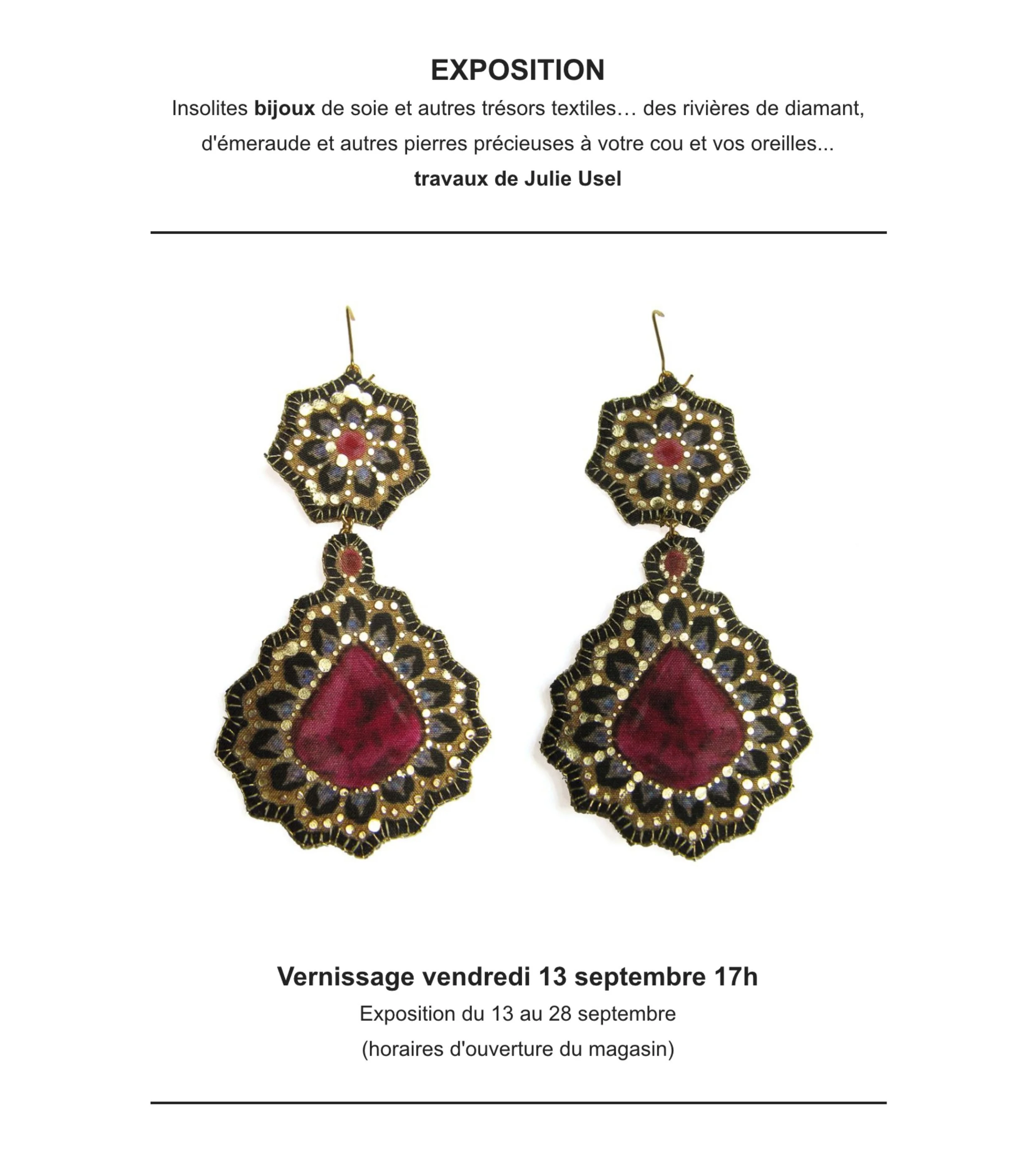 Insolites bijoux de soie et autres trésors textiles, Solo exhibition, Materiotek-Mercerie, La Chaux-de-Fonds, CH. Septembre 2019