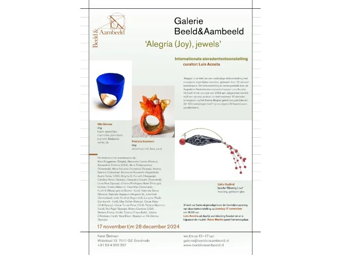 Alegria, touring exhibition curated by Luis Acosta. Sloveniana Jewelry week, Drat Gallery, Izola. 05.04 - 03.05 2025