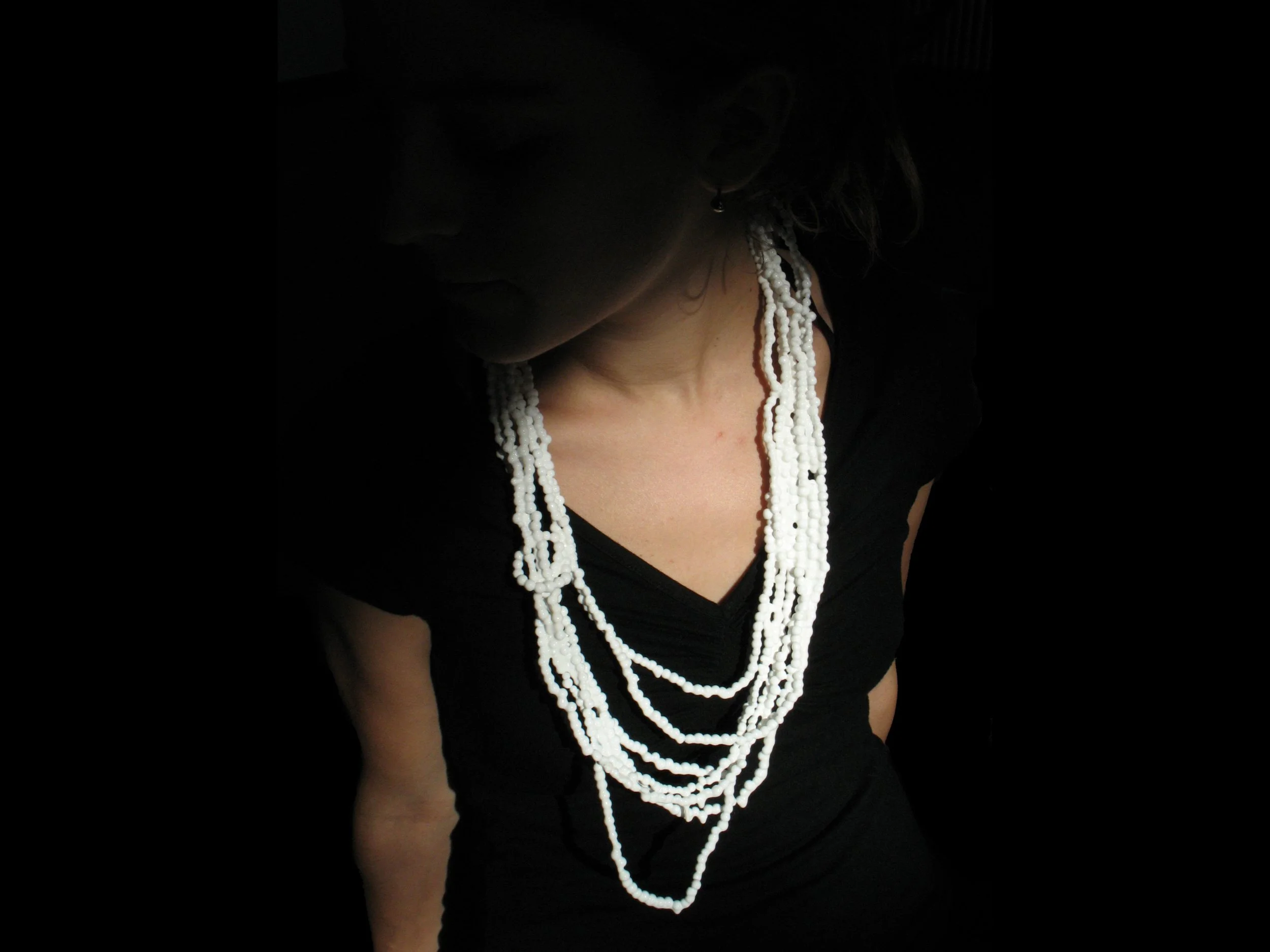Working on the formal aspect of the pearl, I gave my personal interpretation to the traditional pearl necklace, revising its shape in different ways, experimenting various materials and looking for a large diversity concerning the techniques and the final perception.